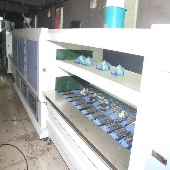 回收二手制鞋生產線大底平板壓底機 收購紅外線貼底流水線設備